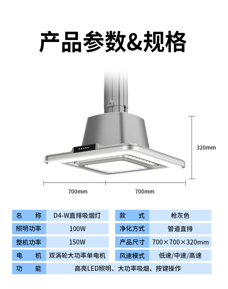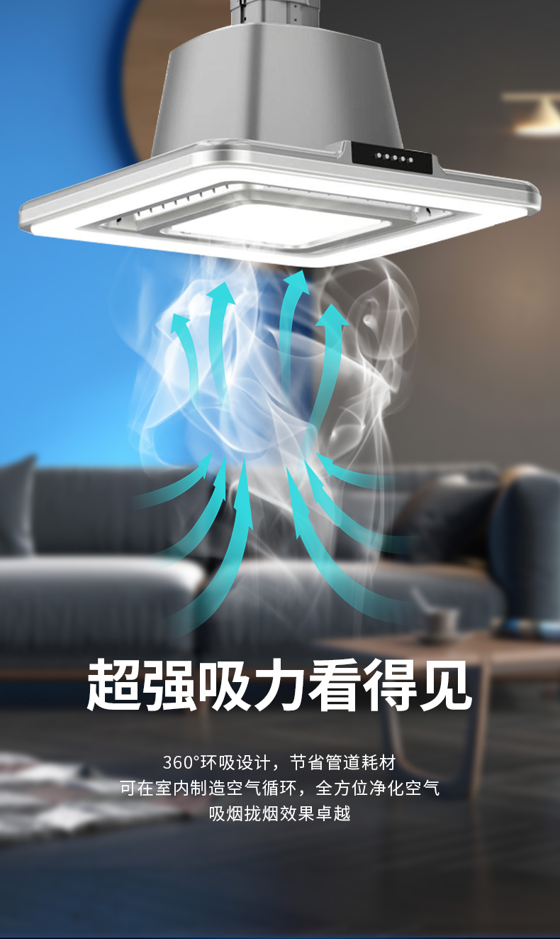 - 直排吸煙凈化燈強(qiáng)勁環(huán)吸四邊燈光D8-W